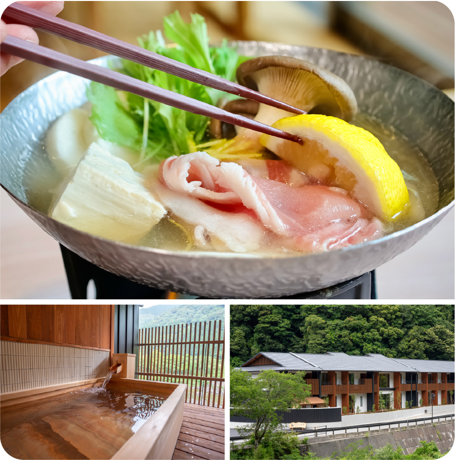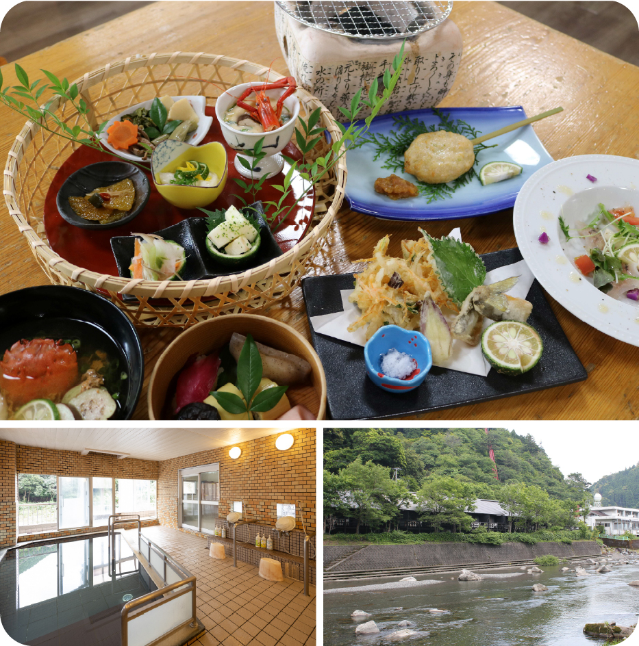 夕食朝食付きプラン北川村の自然に包まれた山あいの湯宿で、美肌の湯といわれる湯にゆったり浸かり、地元産柚子が香る豚しゃぶしゃぶを堪能。四季の味わいと温泉の癒しを味わえる、贅沢なひとときをどうぞ。