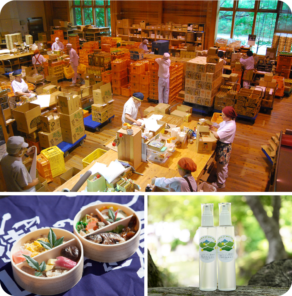 お食事×馬路温泉前駅弁当冬限定のゆずと自然薯づくし膳に加え、「ごっくん馬路村」の工場見学や「柚子の森」でのアロマクラフト体験、馬路温泉前駅弁当まで楽しめる、食と体験が盛りだくさんの馬路村満喫コース。